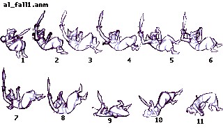 We have more details provided in the sketch for Aladdin’s second falling animation. The image itself calls out specific frames for loops and holds: