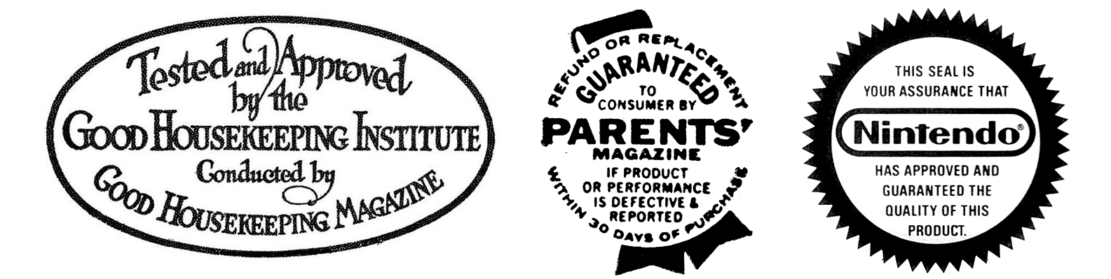 The Guaranteed Seal was inspired by Good Housekeeping’s Seal Of Approval, possibly the most recognizable trust symbol of the 20th century, and likely a direct ancestor to Nintendo’s Seal Of Quality.
